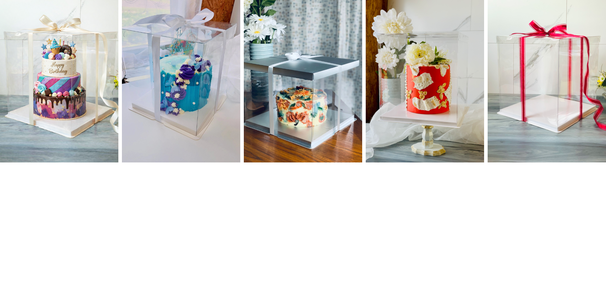 Fully transparent display boxes that turn your cake into the centerpiece — not something hidden in cardboard.