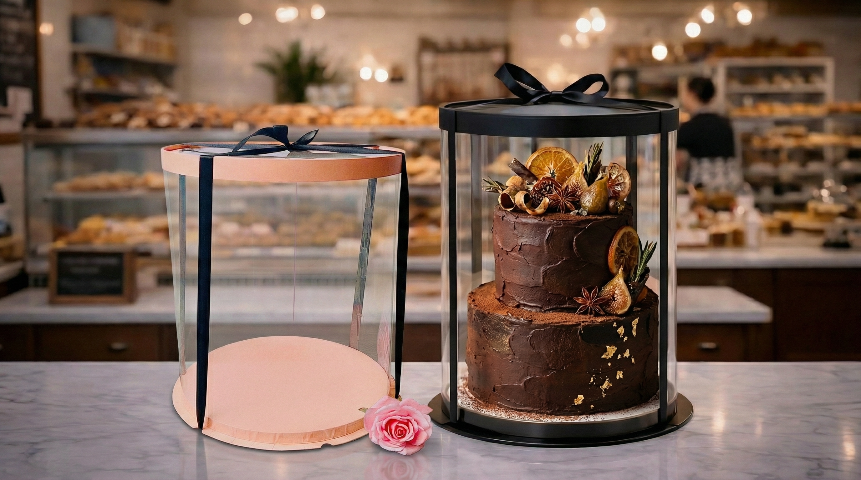 Clear cake boxes vs cardboard cake boxes. Discover the best packaging for tall cakes, delivery, and premium presentation.
